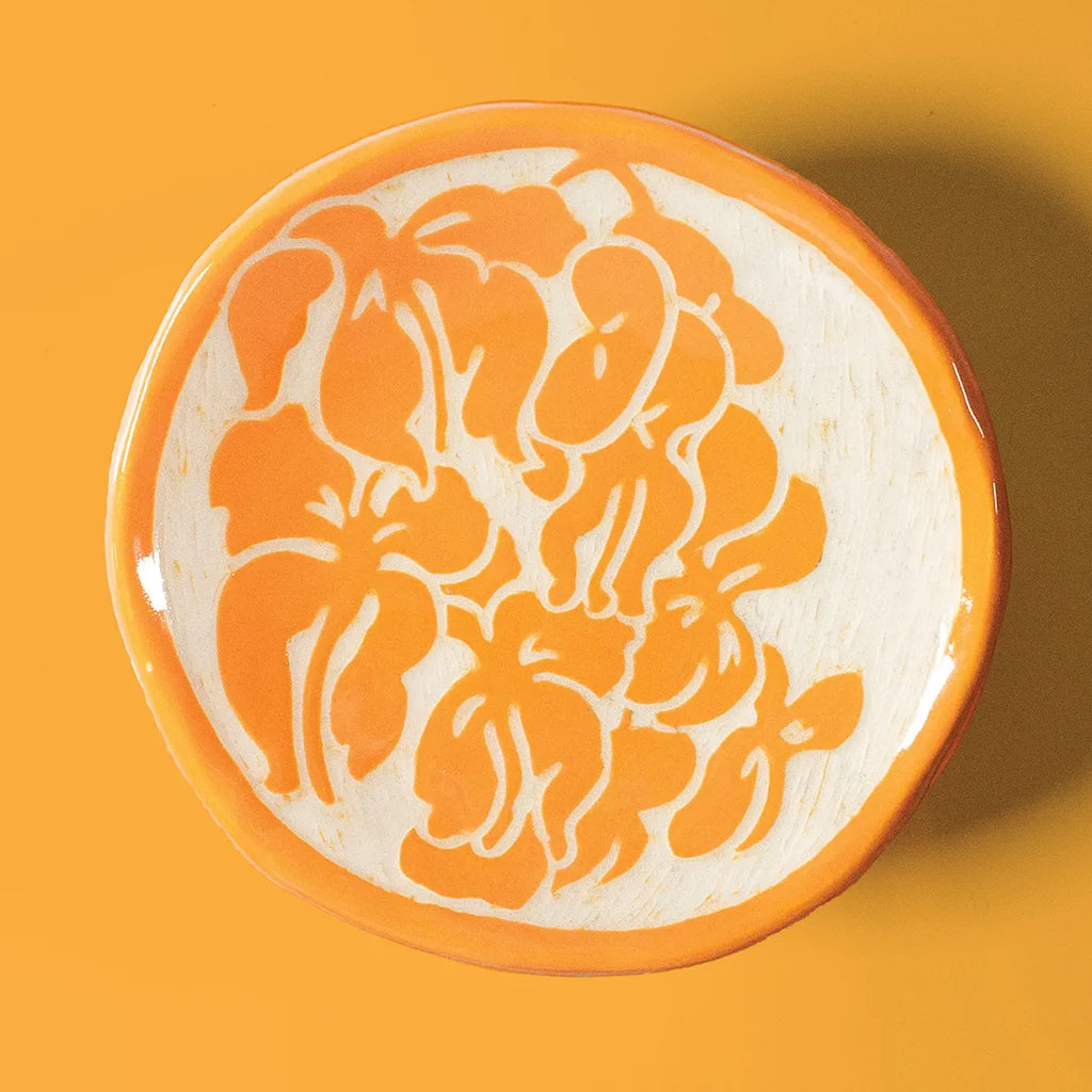 Nectar is a rich, warm yellow reminiscent of honeysuckle flowers. At cone 05, it appears as a bright, golden yellow and transforms into a soft, light amber when covered with a clear glaze. The colour deepens slightly at cone 5 and cone 10, maintaining its beautiful warmth across firing ranges.