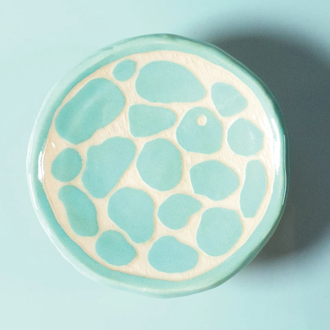 Sea Glass is a very pale blue-green colour at cone 05 and becomes richer and darker under a clear glaze. It remains the same at cone 5, but fired to cone 10 becomes more blue.