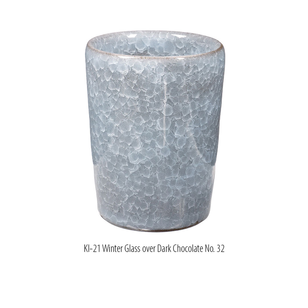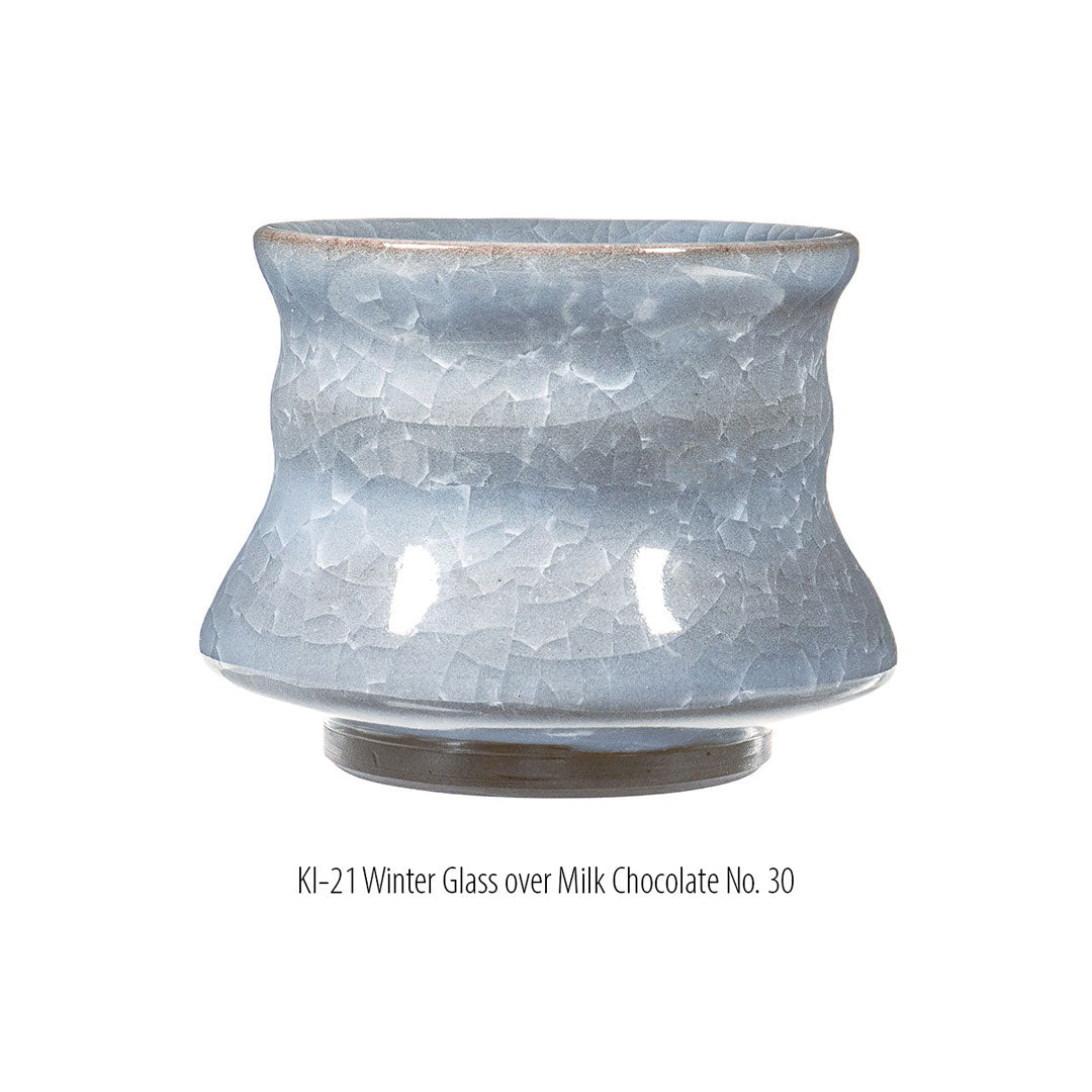 The AMACO Kiln Ice range is inspired by traditional Guan and Snowflake glazes, characterised by a fine network of hairline cracks known as "crazing". These glazes are translucent overall, but become slightly opaque where the cracks develop, resulting in a beautiful layered visual texture. Variations in application thickness and firing technique can also affect the fired result.