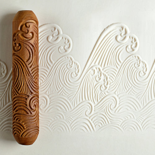 A precision-carved textured roller that creates a pattern of swirling waves on clay. Perfect for slab work, hand-building, or adding decorative bands to thrown pots - MKM's range of quality wooden stamps and rollers deliver beautiful repeatable designs every time.