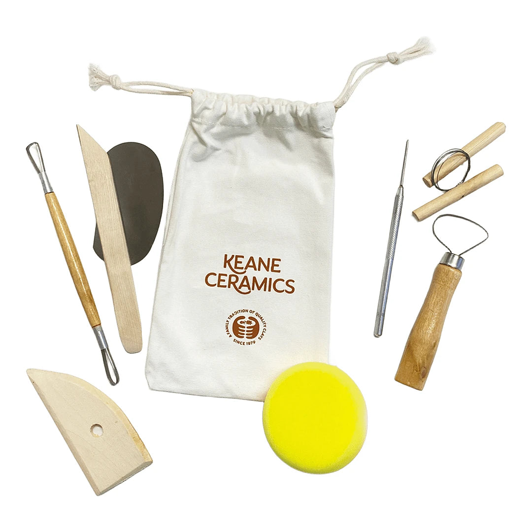 Kickstart your clay adventures with this 8-piece pottery starter kit. Curated especially for beginners, it contains all the essential tools you will need to get throwing, sculpting, slabbing, coiling, and everything in between!