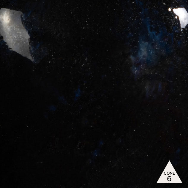 Cone 06 oxidation: Obsidian is an opaque black base glaze with variegated blue/green/brown crystals that melt.