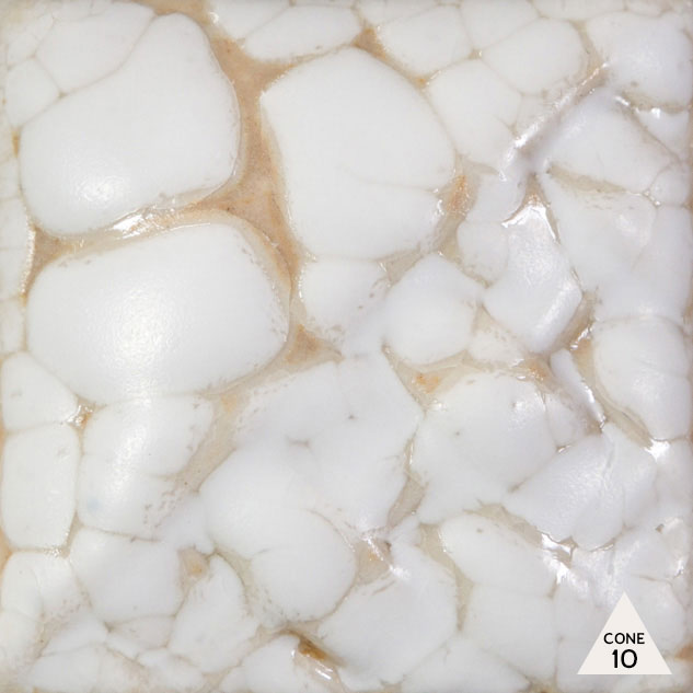 Cone 6 oxidation: White Mudcrack is a high-texture glaze that forms a raised, cracked surface. The thicker the application, the more textured the surface will be.